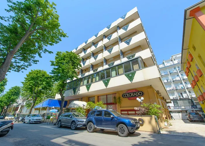 Ten hotel leży w dzielnicy Rivazzurra, 10 min jazdy samochodem od takich miejsc kultu religijnego jak Świątynia Malatesty. 3-gwiazdkowy obiekt jest położony w pobliżu takich miejsc jak Diabelski młyn w Rimini 5 km) i Rimini Dolphinarium 4 km). Do Park wodny Beach Village można dostać się w ciągu 10 min autem. Hotel Colorado mieści się 5 km od lotniska Rimini i w odległości krótkiego spaceru od przystanku autobusowego Brindisi.